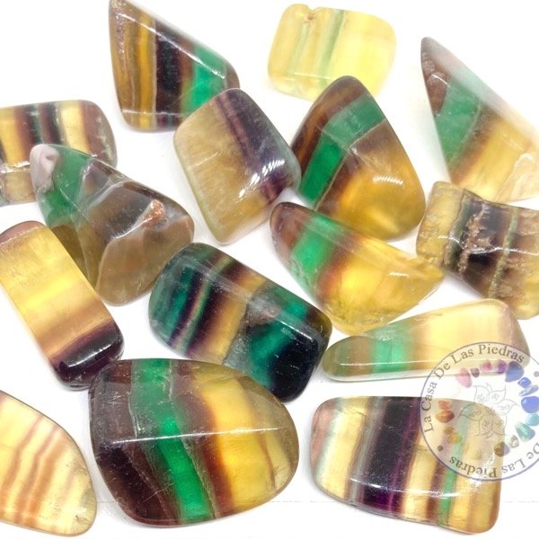 La fluorita arcoiris se considera una piedra espiritual de limpieza, purificación y equilibrio. Tiene una energía muy sutil y eleva la vibración a través de la relajación de la mente. Potencia la intuición. Es una piedra que favorece la organización y el orden interno. Te ayuda a limpiar el aura a la vez que te lo estabiliza, expulsa las energías negativas y tensiones varias, integra las energías espirituales y reorganiza los cuerpos físico, mental y espiritual. Te ayuda a poder discernir, cortando influencias externas que puedan ejercerse sobre ti. Te ayuda a aumentar la autoconfianza, mejora la coordinación física y mental, te ayuda a actuar objetivamente y ser imparcial.